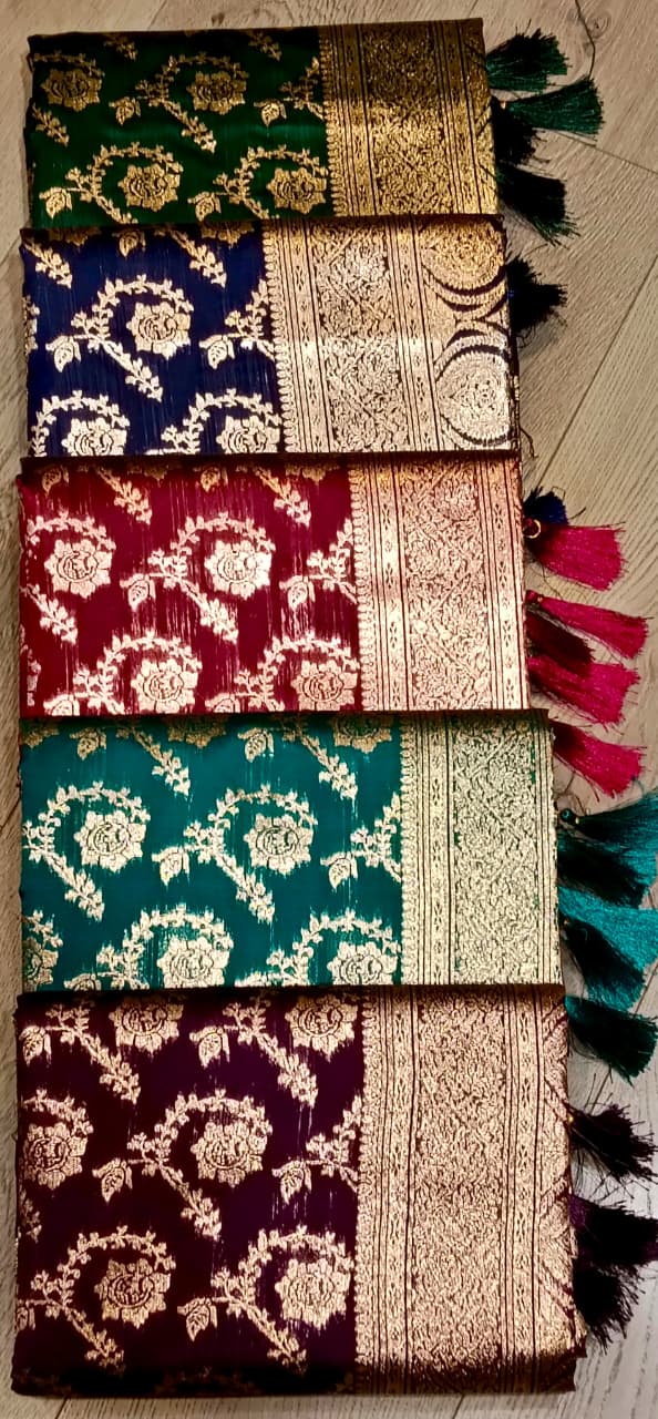 Step into classic ethnic elegance with this saree featuring floral motifs, a broad traditional border, and tassel pallu accents. Its rich festive finish makes it a perfect choice for pooja, parties, and family functions.