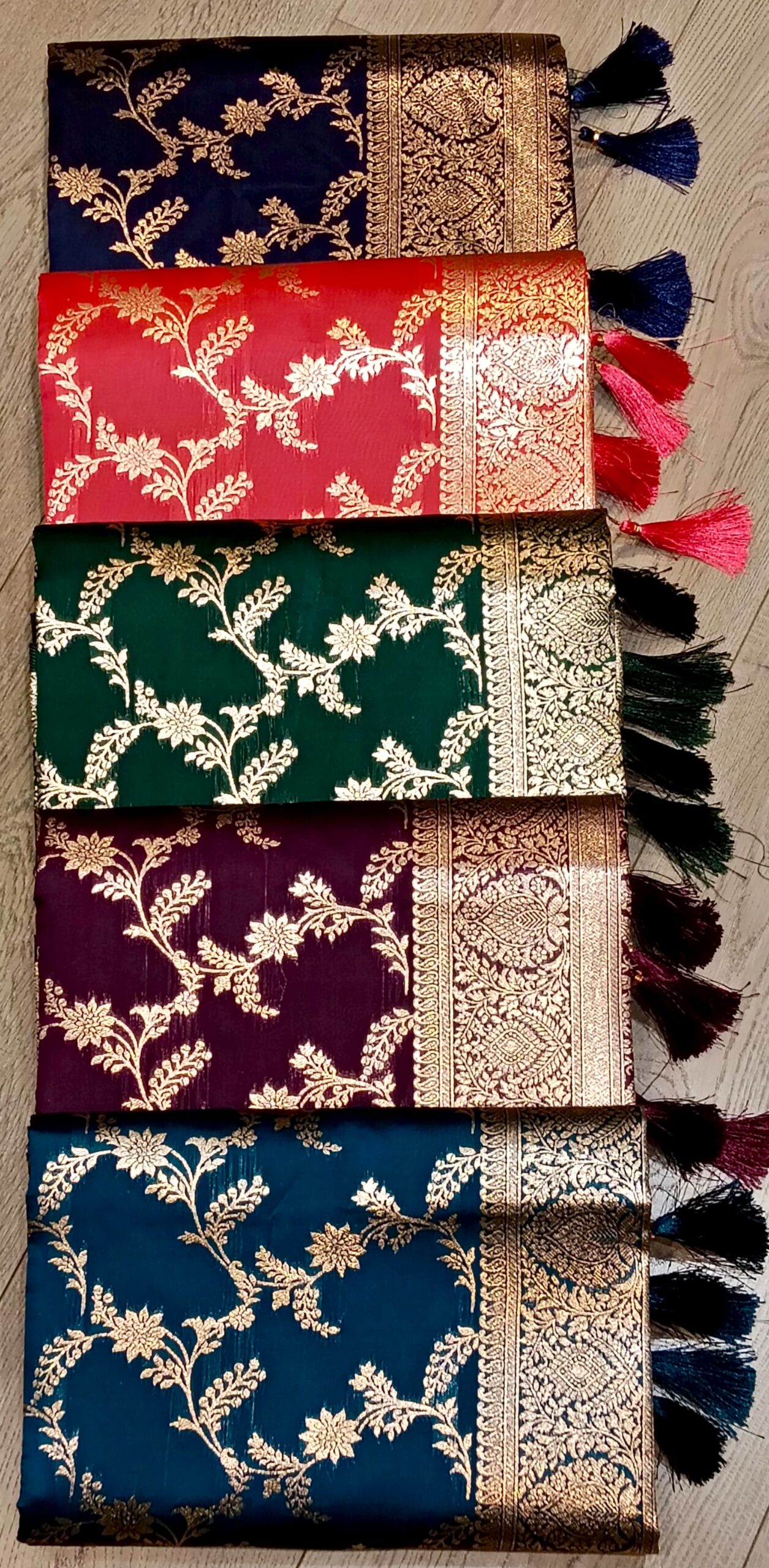 Enhance your ethnic collection with this elegant saree featuring graceful floral vine zari motifs all over the body, a richly woven border, and a premium pallu with tassel detailing for a refined festive finish. Its classic traditional appeal makes it a perfect pick for weddings, festivals, pooja, parties, and family functions.