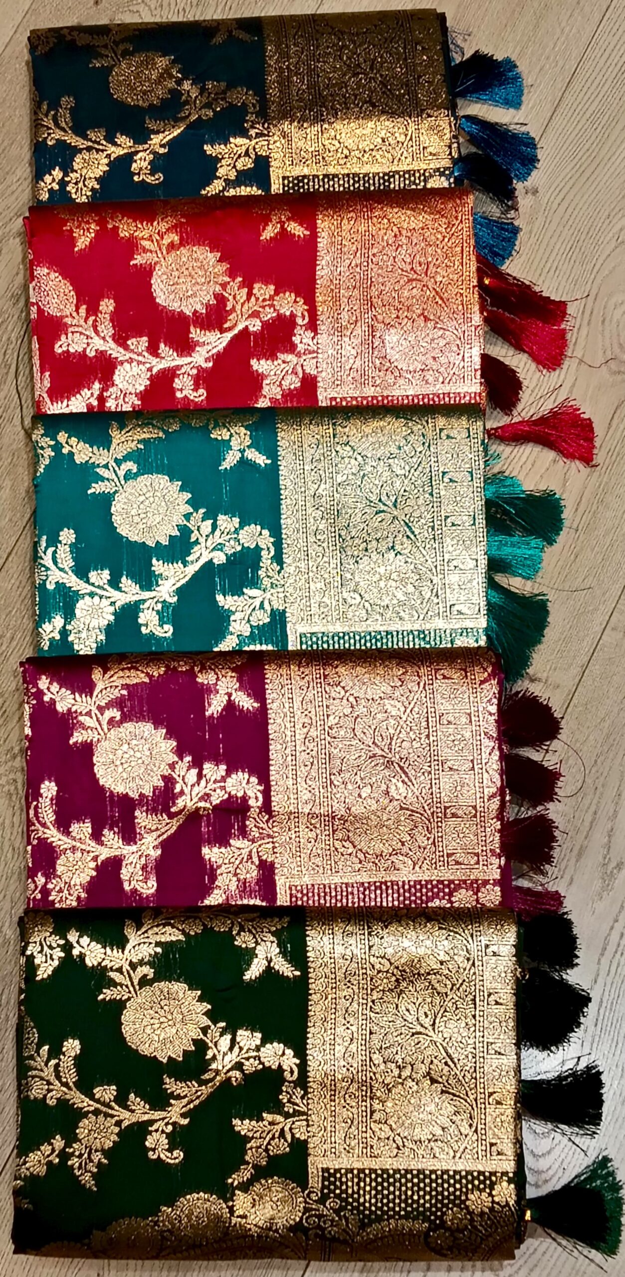 Add timeless festive elegance to your wardrobe with this beautiful saree featuring intricate floral zari motifs across the body, a richly woven traditional border, and a premium pallu finished with tassels for a graceful ethnic look. The detailed floral design makes it a perfect choice for weddings, festivals, pooja, parties, and family functions.